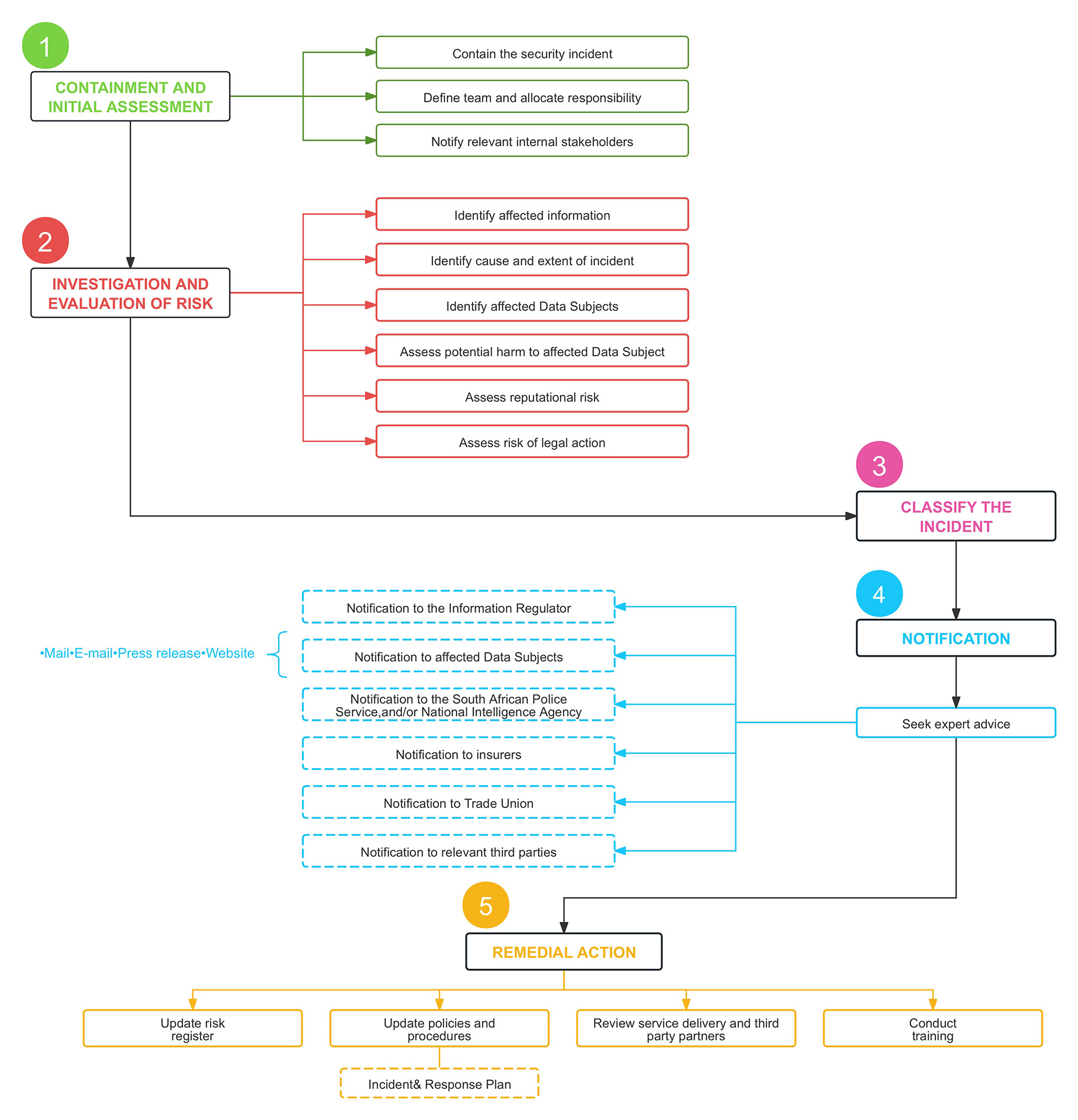 notifying all affected Data Subjects, if identifiable, unless told not to by the Regulator and/or law enforcement;